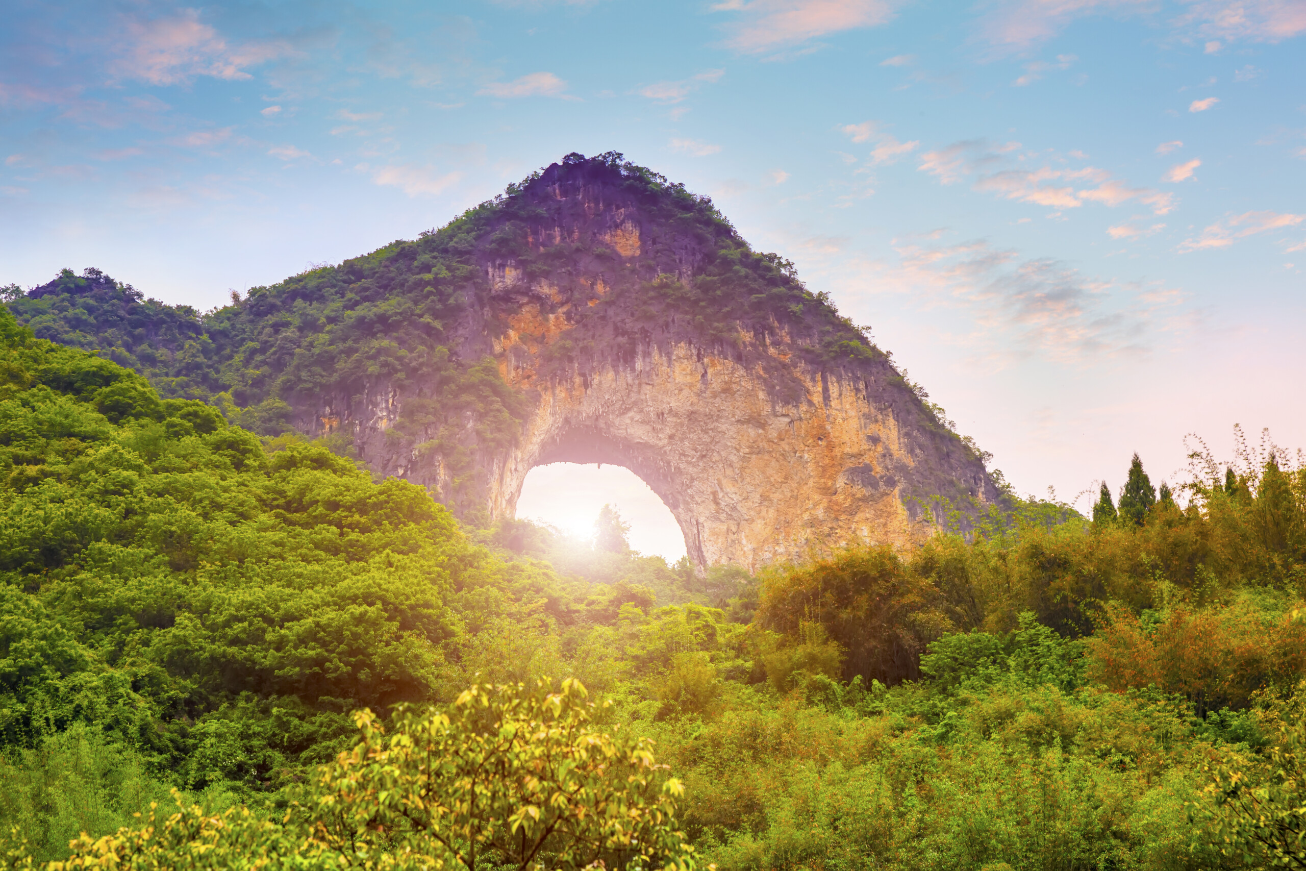 Stop at the mystical Angel Eye Mountain, a natural wonder with a giant circular hole piercing through its peak.