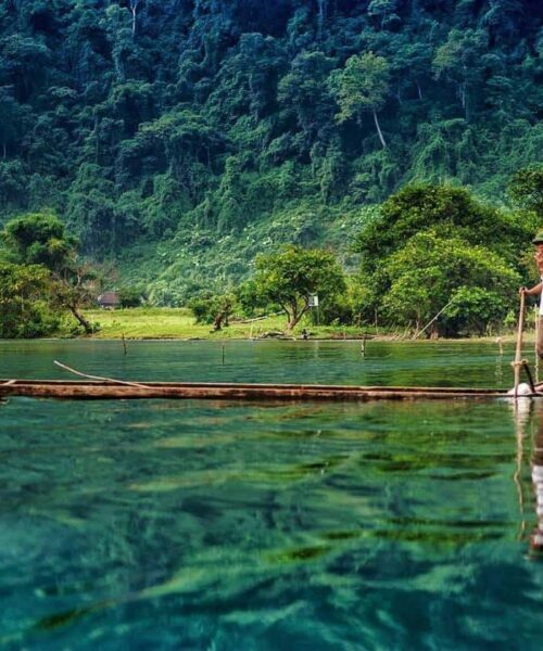 07:00 am Visitors Dark and Light Cave. Here you can freely kayak or bamboo Boat to explore the landscape, or immerse yourself in the cool, clear blue water of this place.