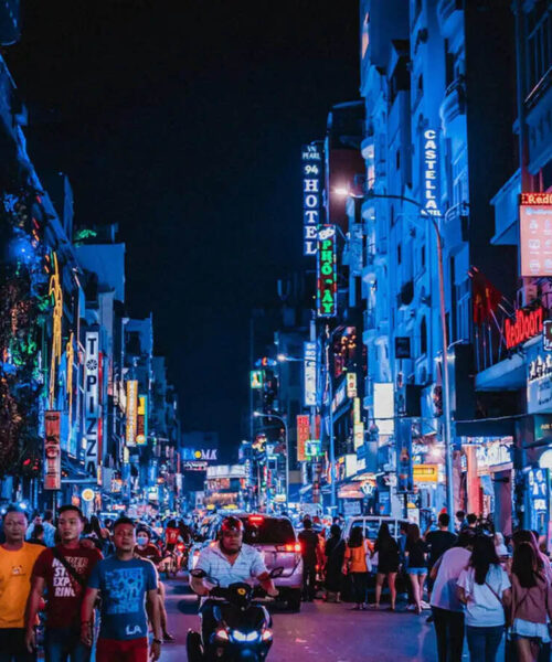 Join nightlife at Bui Vien walking street with pub, bar and street food. Manage your dinner. Overnight in Ho Chi Minh.