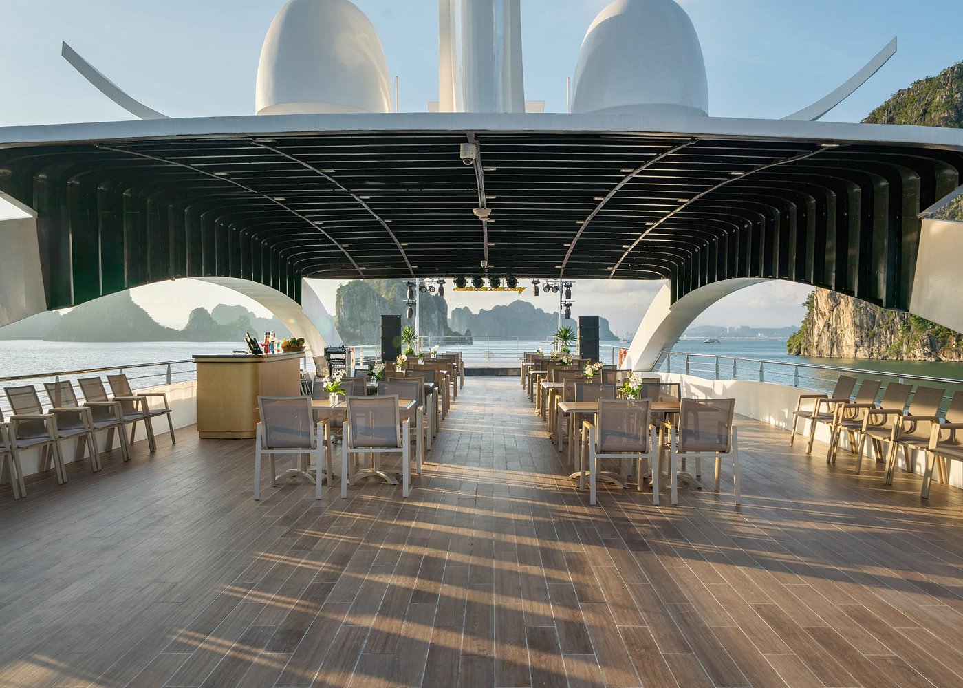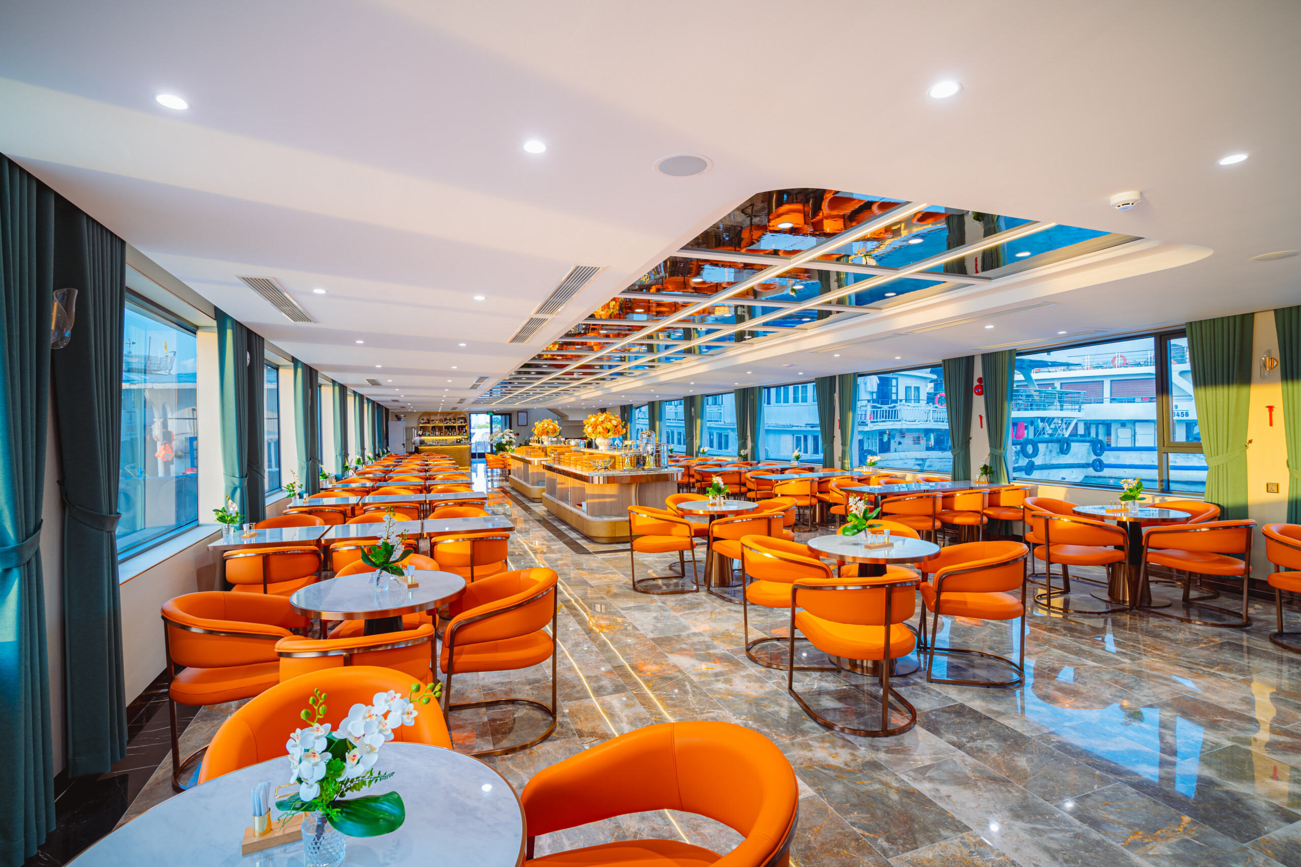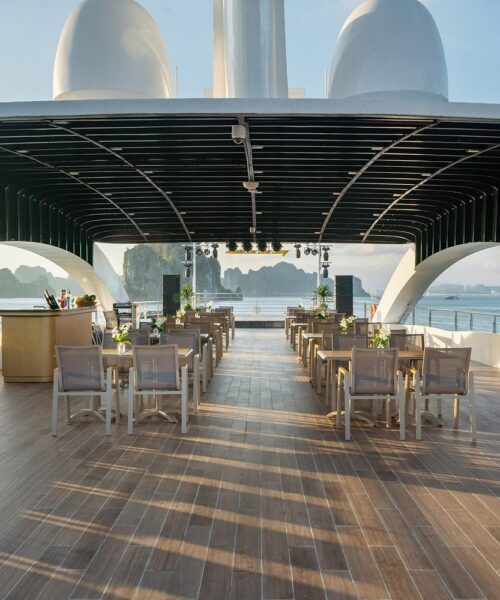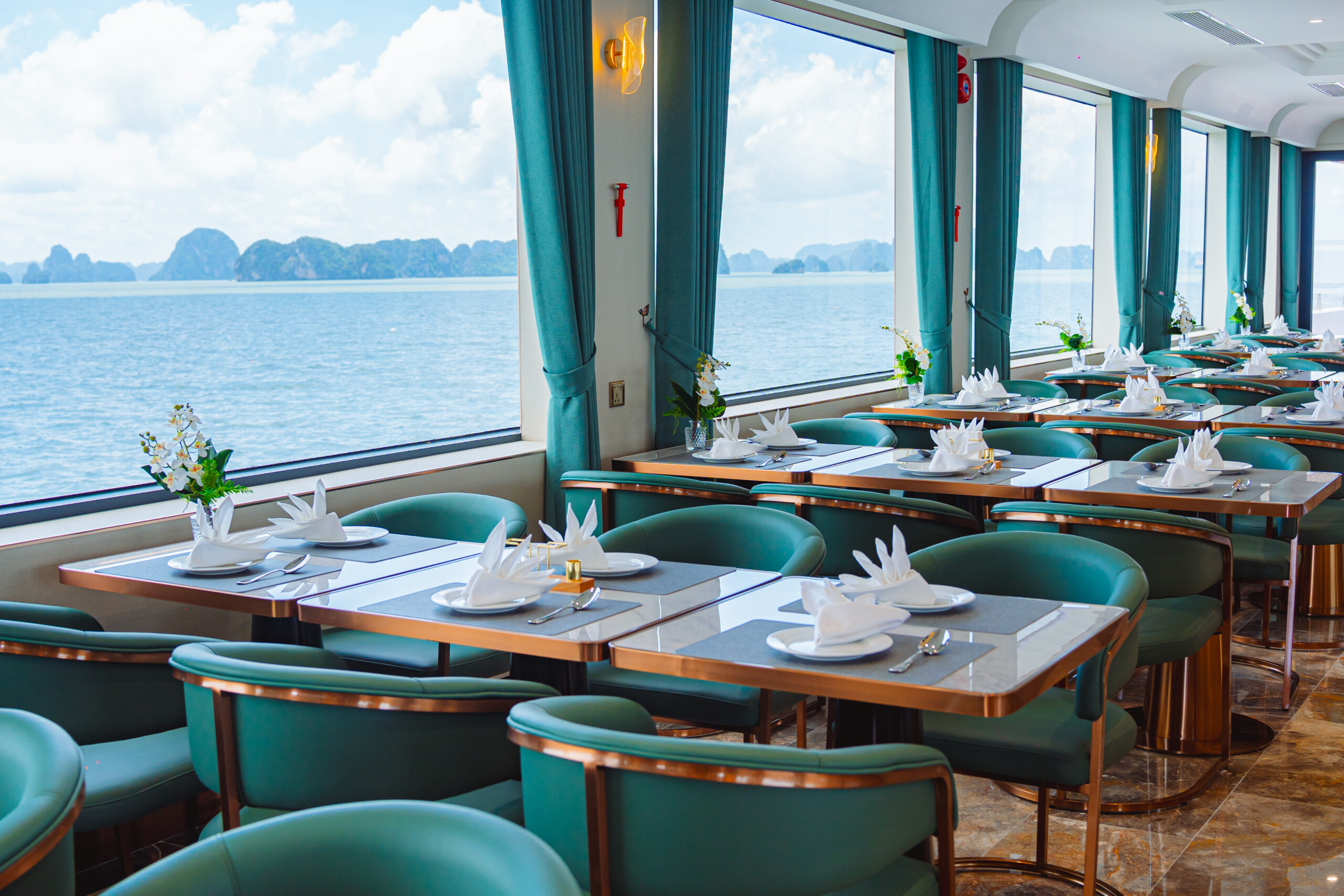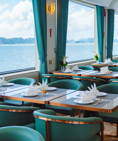11h15: Enjoy a delightful lunch at the 5-star restaurant on Leona Cruise as you glide past thousands of majestic limestone karsts in the heart of the World Heritage Site.